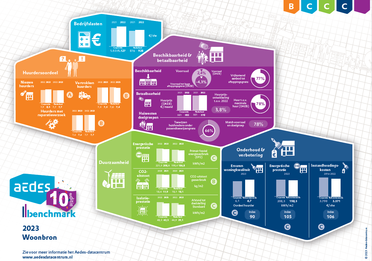 Eind 2023 maakte Aedes, de vereniging van woningcorporaties, de resultaten van zijn jaarlijkse benchmark bekend. Doel van deze benchmark is om corporaties te kunnen vergelijken en van elkaar te leren.