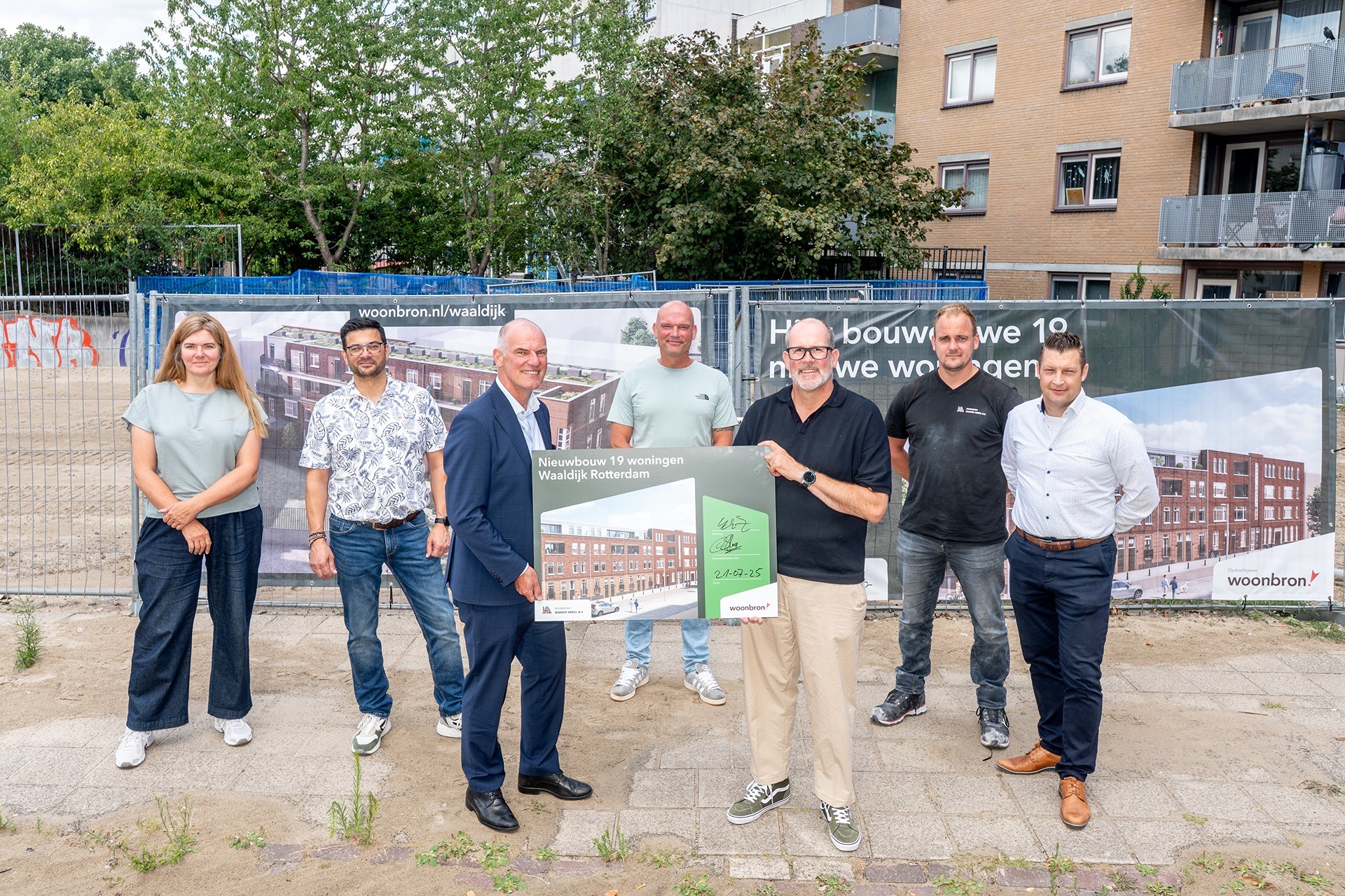 Woningcorporatie Woonbron en Bouwbedrijf Bakker Arkel hebben een overeenkomst ondertekend voor de bouw van 19 duurzame middenhuurwoningen aan de Waaldijk in Rotterdam-Delfshaven.