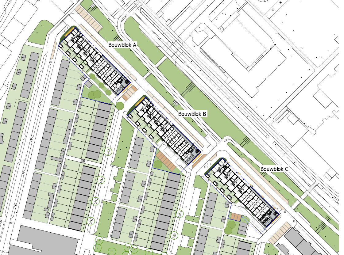 Situatietekening van de bouwblokken A, B en C